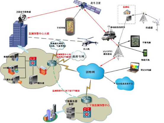地質(zhì)災(zāi)害監(jiān)測預(yù)警智慧管理系統(tǒng)綜合利用計(jì)算機(jī)網(wǎng)絡(luò)技術(shù)、地理信息系統(tǒng)技術(shù)、衛(wèi)星導(dǎo)航定位與通信技術(shù)、遙感技術(shù)、自動監(jiān)測技術(shù)等,實(shí)現(xiàn)地質(zhì)災(zāi)害自動監(jiān)測與預(yù)警、信息發(fā)布、救援指揮和管理等功能。