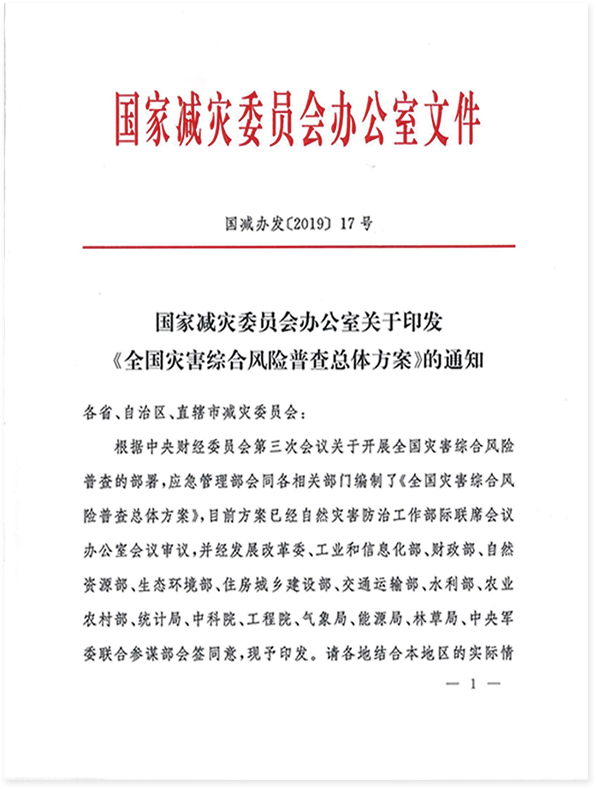 ●2019年12月,國(guó)家減災(zāi)委員會(huì)辦公室印發(fā)《全國(guó)災(zāi)害綜合風(fēng)險(xiǎn)普查總體方案》
