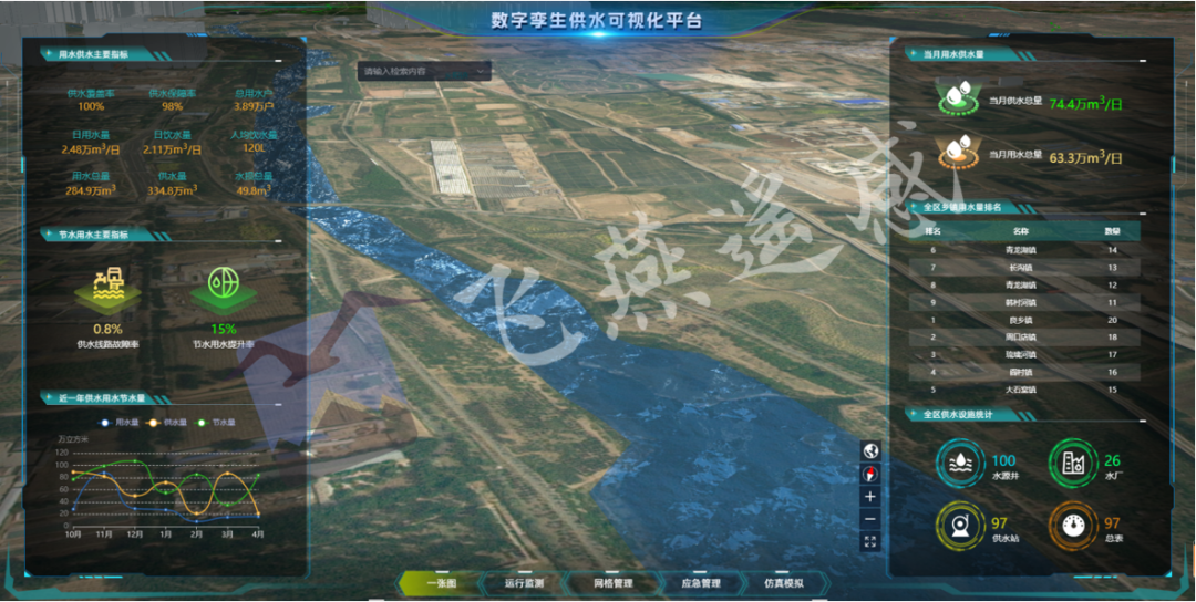 數(shù)字孿生供水平臺(tái),集成數(shù)字孿生技術(shù)、三維可視化技術(shù),通過建模渲染建立水務(wù)設(shè)施的結(jié)構(gòu)形狀和位置關(guān)系,實(shí)現(xiàn)物理對象的數(shù)字化表達(dá)。打通水務(wù)管理中各業(yè)務(wù)系統(tǒng)的數(shù)據(jù)孤島,實(shí)現(xiàn)水務(wù)工程的三維展示、全過程實(shí)時(shí)監(jiān)測、故障預(yù)警等,協(xié)助管理者一目了然地掌握業(yè)務(wù)趨勢,獲取數(shù)據(jù)使用價(jià)值,完成高效率管理、運(yùn)營和決策。