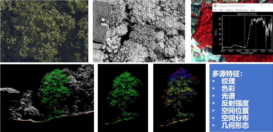 在智慧林業(yè)孿生建設(shè)中,基于飛燕遙感多模態(tài)數(shù)據(jù),時(shí)空同步的高光譜影像、激光點(diǎn)云結(jié)合少量的地面或街景影像,即可自動化、大范圍快速生成單體化樹木三維模型場景。激光點(diǎn)云提供幾何信息,高光譜影像進(jìn)行樹種識別,通過實(shí)測樣本庫自動匹配樹種三維模型,從而達(dá)成樹木模型的批量構(gòu)建,并具備測繪學(xué)意義上的幾何與屬性精度。