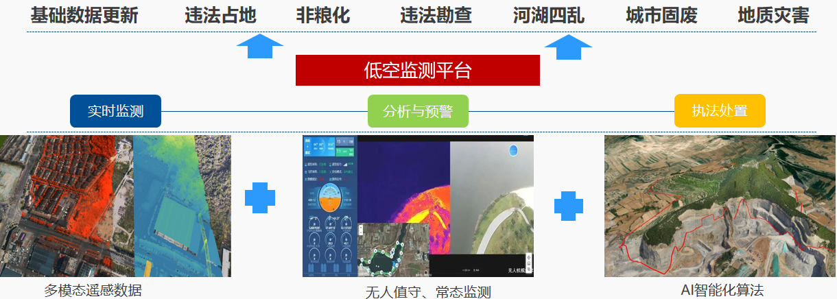 依托豐富的項(xiàng)目經(jīng)驗(yàn)與技術(shù)積累,飛燕遙感明確實(shí)景三維高質(zhì)量、可持續(xù)發(fā)展與應(yīng)用,離不開大范圍、多模態(tài)、高效率、可持續(xù)的數(shù)據(jù)獲取與處理體系,在自主研發(fā)8.8億像素AIMS?多模態(tài)航攝儀的基礎(chǔ)上,再次自主研發(fā)了遠(yuǎn)瞰?Farsight大型低空無人值守監(jiān)測系統(tǒng)。不僅可以同步采集正射、傾斜/全景、點(diǎn)云、高光譜以及熱紅外影像,構(gòu)建低空遙感信息數(shù)據(jù)“全景化”,還可以憑借其低成本、高續(xù)航的優(yōu)勢,實(shí)現(xiàn)基于少量機(jī)庫的區(qū)域化全覆蓋。依托自主研發(fā)“玄鳥”AI算法庫,構(gòu)建城市規(guī)建管“智慧腦”,實(shí)現(xiàn)變化圖斑數(shù)據(jù)智能化提取,分析與預(yù)警。