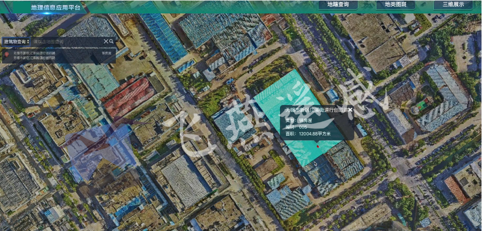 通過(guò)企業(yè)級(jí)搜索引擎,通過(guò)關(guān)鍵詞快速精準(zhǔn)定位圖斑。單擊圖斑可顯示關(guān)聯(lián)的屬性信息。