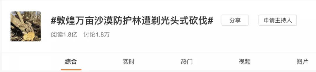 然而就在幾天前,這片綠色屏障卻因遭剃頭式砍伐而登上熱搜榜,引起網(wǎng)友的激烈討論!媒體稱,近10余年來,敦煌“持續(xù)遭遇大面積‘剃光頭’式砍伐,萬余畝公益防護(hù)林在刀砍鋸伐中所剩無幾”。