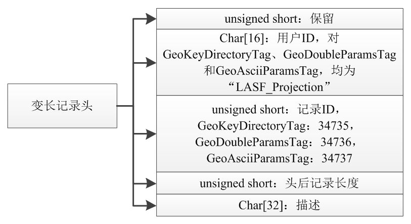 圖 1 LAS存儲坐標系信息的文件結(jié)構(gòu)圖